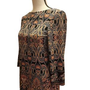 Wisp Boho Paisley Shift Dress, 3/4 Sleeves, Size 4