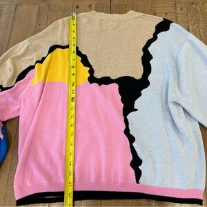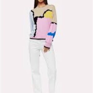 Wispr Aubrey Silk-Blend Cream Multicolor Pullover Sweater Women's Large abstract