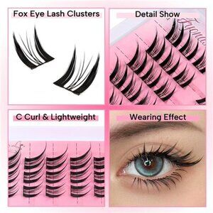 🧿Foxy Lash Clusters: A total of 48Pcs of fox eye lash clusters, the style is more sexy and charming, creating the most popular eyelash modeling at present. Without going to the salon, you can get better results with lower investment, and you can also achieve beauty freedom at home!