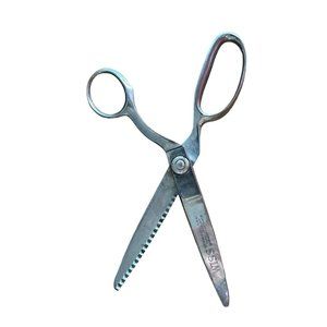 This vintage Wiss metal pinking shears/scissors are perfect for any sewing enthusiast. Made in the United States, these dressmaker's scissors & shears are a little stiff, but in good working order and will help you achieve precise cuts on your projects. The unique zigzag blade design is perfect for preventing fraying on fabric edges.