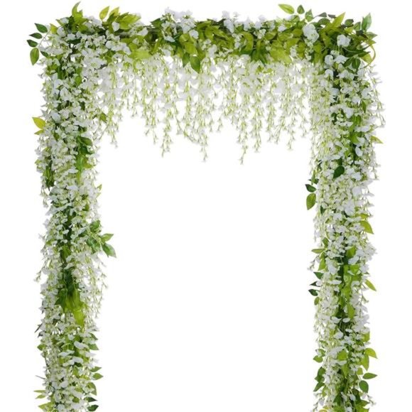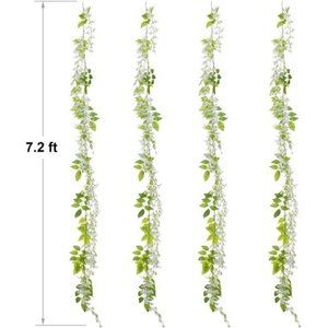 Wisteria Artificial Flowers Garland 4Pcs Total 28.8ft White Artificial Wisteria
