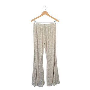 Wisteria Lane Sequined Bell Bottom Pants in Champaign Size Large NEW