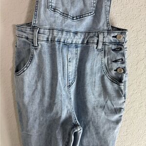 Stylish light blue denim overalls perfect for a casual day out. Features adjustable straps and a comfortable fit.