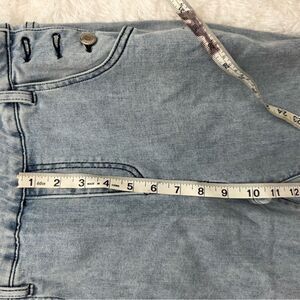 Stylish light blue denim overalls perfect for a casual day out. Features adjustable straps and a comfortable fit.