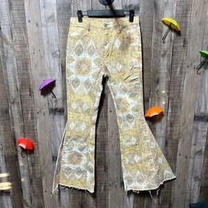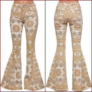 Wisteria Lane Gold Medallion All Over Print Bell Bottom Jeans