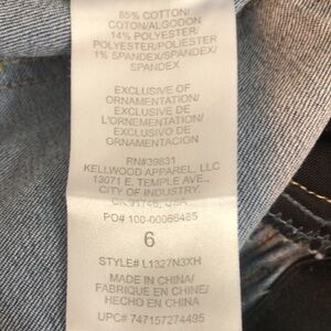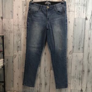 Medium blue denim, belt loops,5 pockets, zipper and button closure, AB- solution panel, colors may vary vary due to lighting,good used condition, Sz: 6