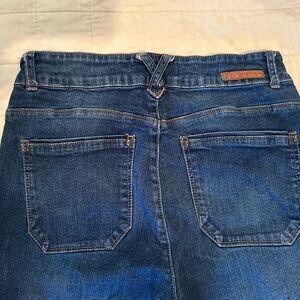 Wit & Wisdom Classic Denim Jean with Frayed Hem - Size 8 - This flattering fit, classic blue denim color is an essential for any closet! Wit & Wisdom is known for their contour shape technology with their elastic waist for added comfort...this jean offers both. This frayed edge adds an edgy style, hitting at the ankle. Suited for casual or add a blazer for dressy casual outings.