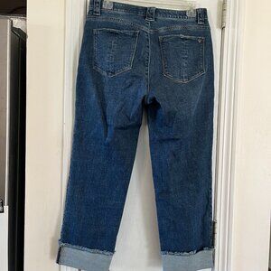 Wit & Wisdom cropped, cuffed, frayed hem jeans. Size 4P; cropped fit, run large with stretchy material. In excellent used condition. From a smoke-free, dog-friendly home.