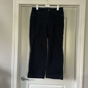 EUC - virtually no signs of wear. Perfect for business casual, these dark wash jeans have a stretchy waistband for a perfect fit.