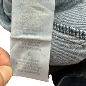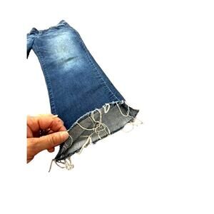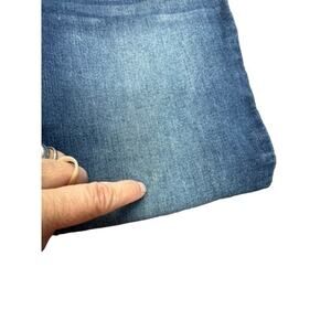 Elevate your denim game with these Wit & Wisdom jeans in size 6. The distressed detailing adds a touch of edgy style to the classic bootcut design, while the elastic lining of the waistband ensures a comfortable fit. The raw hem and blue color make for a versatile addition to any wardrobe, perfect for dressing up or down. These jeans are perfect for any occasion, and are a must-have for any fashion-forward woman's wardrobe.