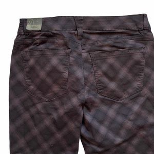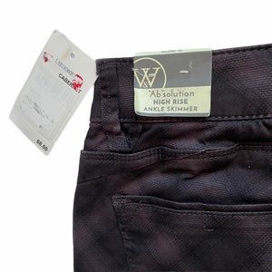 Wit & Wisdom high rise purple & black diagonal patterned plaid ankle slimmer jeans featuring slimming panels.