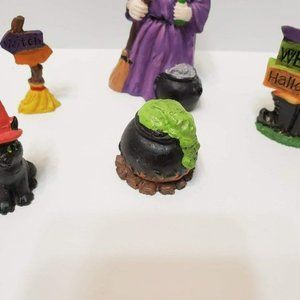 Witch Fairy Garden Kit, Miniature Halloween Village Set, Black Cat, Cauldron
