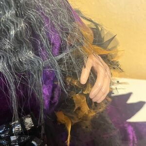 Add a spooky touch to your holiday decor with this posable witch decoration. Featuring striking metal gold glasses and a classic witch design, it's perfect for Halloween festivities.