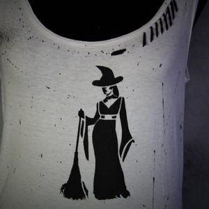 Witch Handmade Distressed Halloween Destroyed ripped Horror Rocker Women Shirt