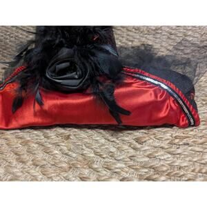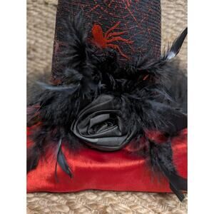 Witch Hat Black Rose Feathers Red Spiders Lace Sequins Satin Tall Halloween