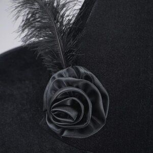 Classic Witch Look: Curly pointed top with feather & black rose for a spooky, gothic vibe