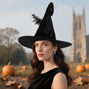 Product details Fabric type Polyester Care instructions Hand Wash Only Origin Imported About this item Soft Velvet: High-quality velvet, soft, breathable, lightweight for all-day wear Classic Witch Look: Curly pointed top with feather & black rose for a spooky, gothic vibe One Size Fits Most: 24.4" circumference, foldable for easy storage & travel Halloween Ready: Perfect for parties, cosplay, haunted houses, gothic costumes Gift Idea: A fun Halloween gift for witches, wizards, magic fans & costume lovers See more About this item