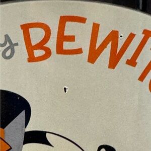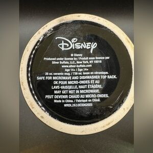 Graphic is excellent on one side of mug, two small spots on other side graphic (see up-close photo). No chips or cracks or stains. Large 25 Oz.