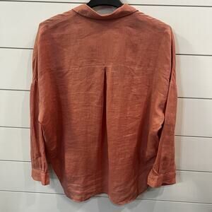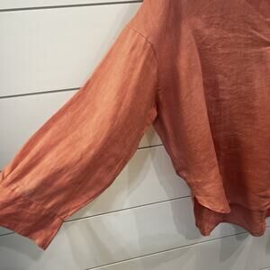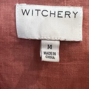 Witchery Women’s Blouse Linen Salmon Size 14 Flowy V Neck Roll Tab 3/4 Sleeves
