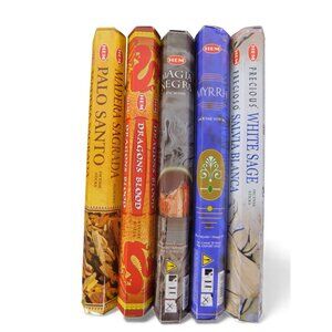 Five full hex tubes (100 sticks total) of premium HEM incense: