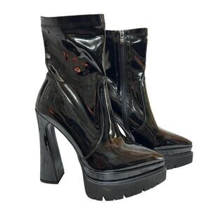 Witchy Black Platform Ankle Boots 9.5 Chunky Heel Pointed Toe Side Zip Gothic
