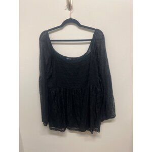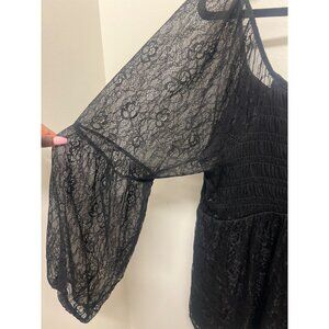 Witchy Dark Romantic Black Lace Smocked Square Neck Baby Doll Top Long Sleeves