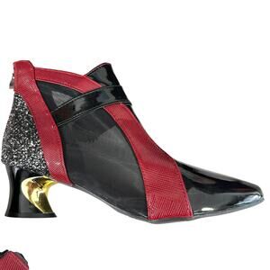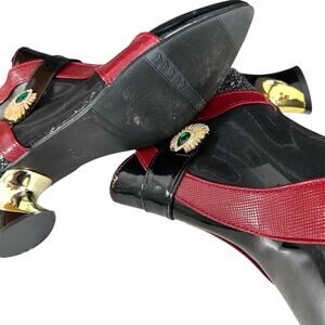 Costume, cosplay, witch, halloween, unusual, green gem, glitter, mesh, low kitten heels 2 in, patent leather faux, great condition only worn once