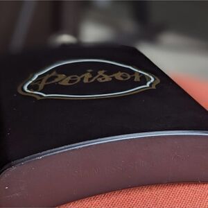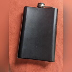 Make sure you have your potion ingredients at the ready with this "Poison" flask. Holds 8 oz of your fav libation. Surface flaws are noted, all around still a sturdy investment. Stainless steel, painted matte black, with gold and white design.