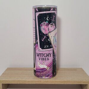 Channel your inner mystic with this enchanting 20 oz stainless steel skinny tumbler, featuring a vibrant, witchy tarot card collage with ethereal pinks, purples, and cosmic vibes. Designs include The Lovers, The Moon, The Black Cat, and phrases like Witchy Vibes – making this a bold and stylish piece for any magical soul.