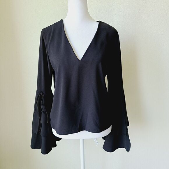 Witchy Whimsigoth Black Shirt Blouse Sz Small Bell Sleeves Fairygrunge NEW
