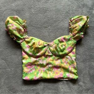 Made in the signature With Jéan honeysuckle print, the Coupe top is a crop with a structured bust and subtle sweetheart neckline.