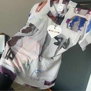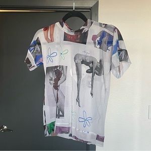 Sheer Mesh like material, high neck and short sleeve. Artwork by Lord Newry