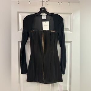 The garment includes internal boning and a Spandex mesh overlay