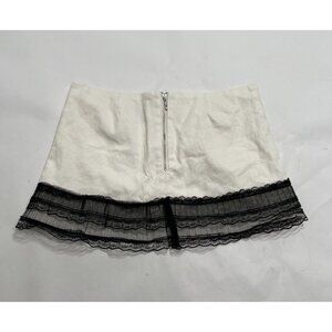Description from retailer: This mini skirt features a sleek white base accented with a delicate black lace trim along the hem, adding a touch of femininity. A small black bow detail at the waistline complements the lace. This skirt is perfect for adding a flirty and stylish touch to any outfit.