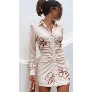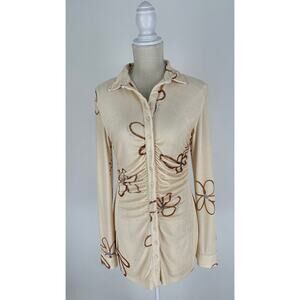 With Jean Andy Dress Chalk Flowers Womens Small Long Sleeve Button Front
