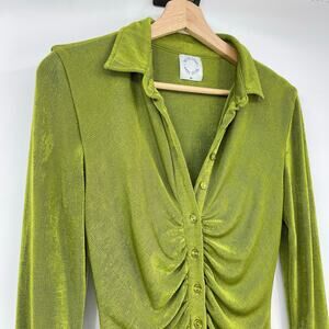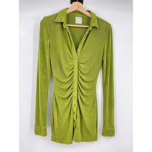 With Jean | Andy Dress Forest Green Ruched Front Slinky Shirt Dress XS