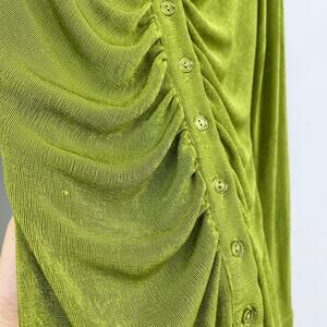 Tags: blogger fave, influencer, insta, ig, slinky, party, mini, bodycon, draped, button, cuff, 60s inspired, disco, evening, revolve, stretchy, stretch, gno, olive, sage, leaf, moss, pretty, trendy, trend, y2k, 00s, shift, long sleeve,