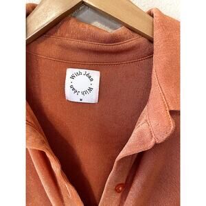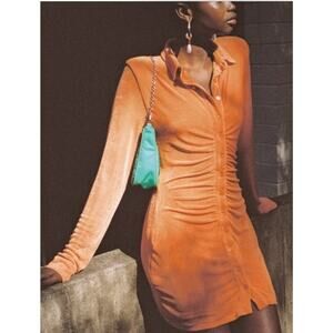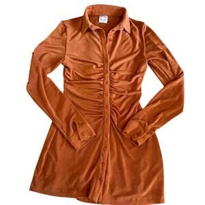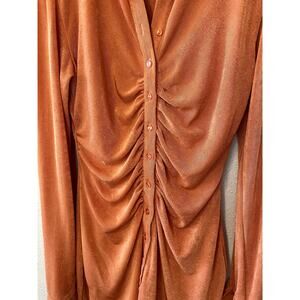 With Jean Andy Long Sleeve Collared Rouched Button Up Orange Mini Dress Medium