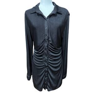 With Jean Andy Mini Dress Long Sleeve Full Button Stretch XL Black Sexy Go Out