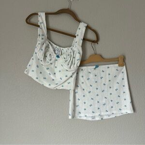 With Jean Brigette Top and Dylan Skirt Set in Blue Floral Pointelle