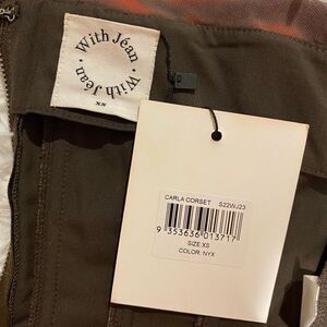 SO cute and BRAND NEW by From Jean! The Carla Corset Top is a strapless, fitted bodice with contoured boning; it's slightly cropped to meet your jean line and zips up to secure you at the back. Red and brown in color. Size XS.