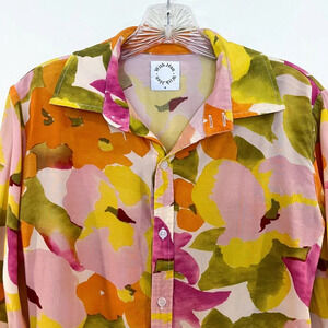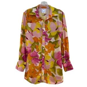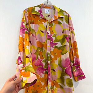 With Jean Kelly Colorful Boho Floral Long Sleeve Button Down Shirt Mini Dress in Tutti Frutti S