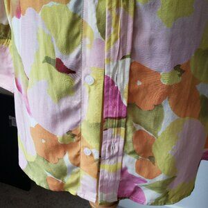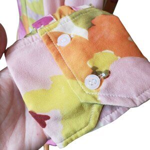 With Jean Pink Green Yellow Orange Floral Long Sleeve Button Front Collar Dress