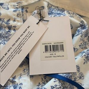 With Jean Sabrin Toile Papillon Strapless Floral Blue White Mini Dress medium