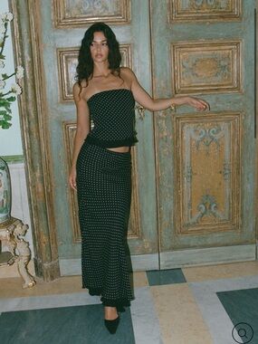 With Jean Priya Midi Skirt | Polka Dot with matching corset top. NWT. Too big for me