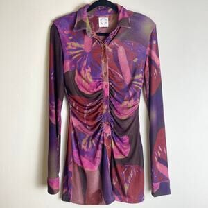 With Jean With x Lord Newry Andy Mini Dress Ruched flower lady Purple SizE XS