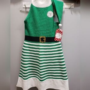 With Love, Derek NWT Green and Ivory Striped Elf Dress with Hat, Medium