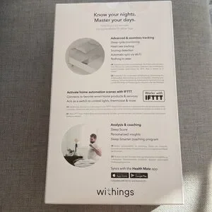 Withings Sleep Tracking Mat in gray. Lightweight and minimal. Tracks sleep metrics quietly. Easy to place under mattress. New in box (unopened).