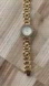 Description: Rare watch! Gorgeous cream dial and crystal embellishments! Gold-tone weave bracelet. Gold-tone hands and markers. Quartz watch. Just cleaned and serviced with a new battery just installed! Works well!
