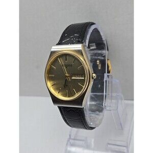 Wittnauer QWR Day Date Mens Vintage Gold Dial General Dynamics Watch New Battery